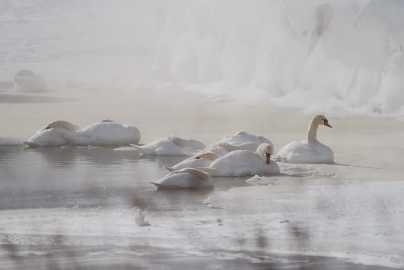 There was only one small spot with very little open water where the swans gather as Lake Michigan is frozen a mile off shore and it has been too rough for the swans to gather as the winds have been blowing for weeks.