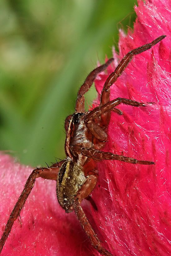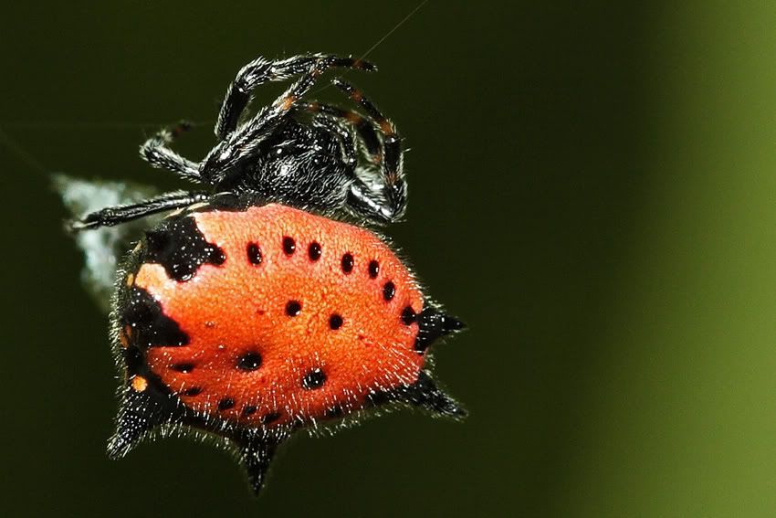 The latest shrimp flower shot is very good, but the lighting is direct and hot. The Spider is Awesome! I like that a lot. Great composition and exposure. The color is great as is the sharpness. Clipping off the tips of his hind feet is a little distracting, but only slightly. And of course with the same lighting, the flash is a little harsh.