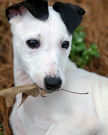 I think the white is not white on my monitor - this is an issue will all monitors we dont have the same calibration so colors and hue, tone etc are hard to tell, and with a white dog, it's even tougher.